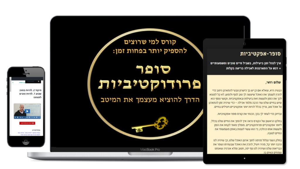 ובזה בדיוק יעזור לך הקורס סופר-אפקטיביות. בקורס נראה איך להפוך את החיים שלנו לאפקטיביים ופרודוקטיביים יותר. מומלץ מאוד לקחת את הזמן ולעשות אותו כהלכה, כי הוא עשוי לשנות באופן משמעותי את החיים לטובה.